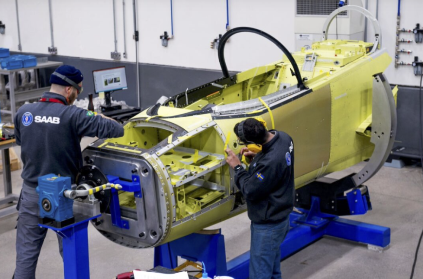 A Saab também implantou linhas de produção de componentes no Brasil e conduz processos de certificação em território nacional. No momento do rollout, empresas brasileiras já são aptas a realizar manutenção essencial, produção de partes da fuselagem e integração de sistemas da aeronave.